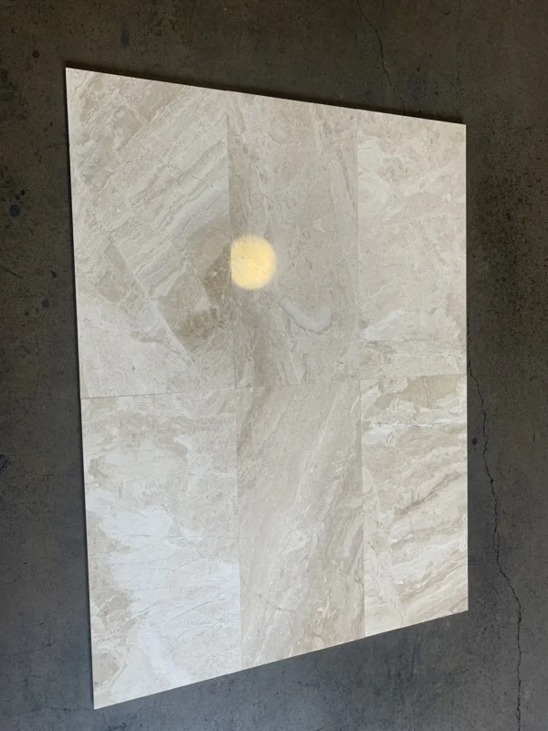Breccia Bianco (Diana Royal) 12×24 Polished Marble Tile highlights sophisticated veining with a luxurious polish for upscale floors and walls. At 1/2″ thick and covering 2 sq ft per piece, the elongated format adds a modern, seamless look to interiors.