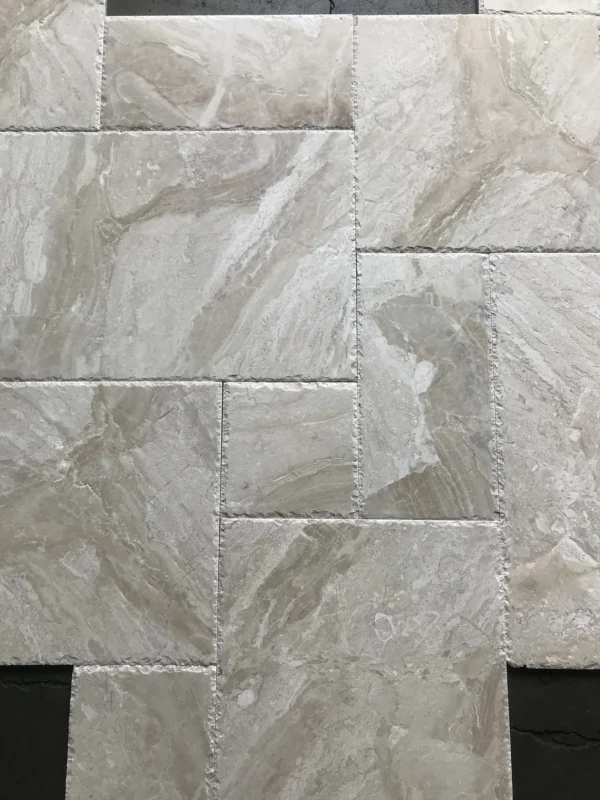 Create old-world charm with the Breccia Bianco Versailles Brushed/Chiseled marble pattern set, featuring a tactile brushed surface and chiseled edges. At 1/2″ thick and covering 8 sq ft per box, this modular layout brings depth and character to classic floors and feature areas.