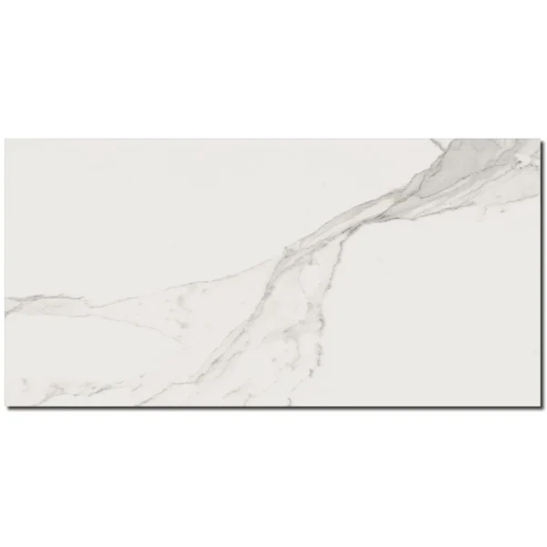 Evoking the elegance of classic marble, the Calacatta 24×48 porcelain tile pairs a silky satin finish with a large-format surface for a seamless, upscale look. Precision-made at 3/8-inch thick and boxed two pieces per carton (15.5 sq ft), it minimizes grout lines for a spacious, contemporary feel.