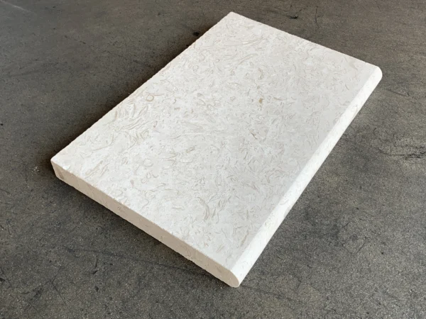 The Cardinal Beige Pool Coping Bullnose Tumbled 16×24 (5 cm) boasts robust construction and gently rounded edges. Its elegant beige limestone complements both traditional and contemporary pool settings.