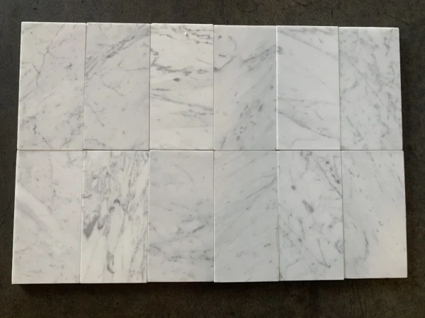 Carrara White Honed 3×6 marble tile presents a soft matte surface and delicate veining that brings calm, understated elegance. With a 3/8″ thickness and 0.125 sq ft per piece, it’s ideal for serene backsplashes, shower walls, and classic layouts.