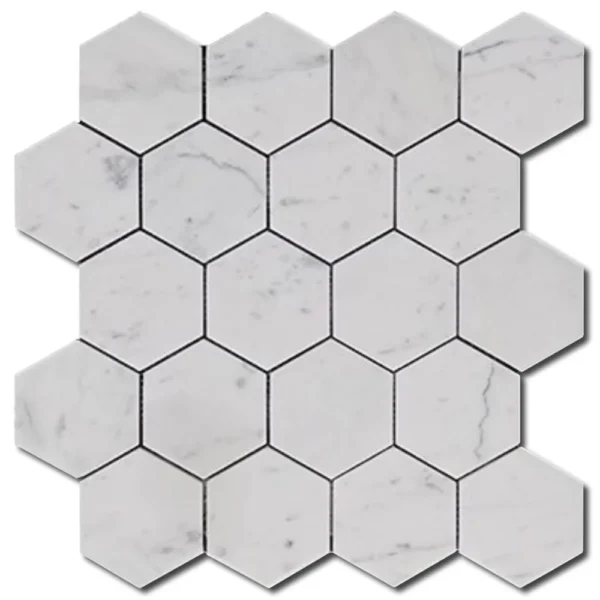 Carrara White Hexagon 3×3 Polished Marble Mosaic