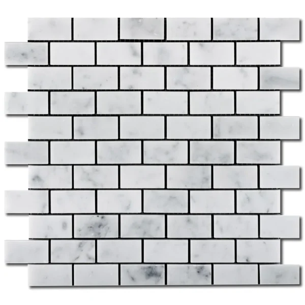 Carrara Whie Marble Brick Honed 1×2 Mosaic