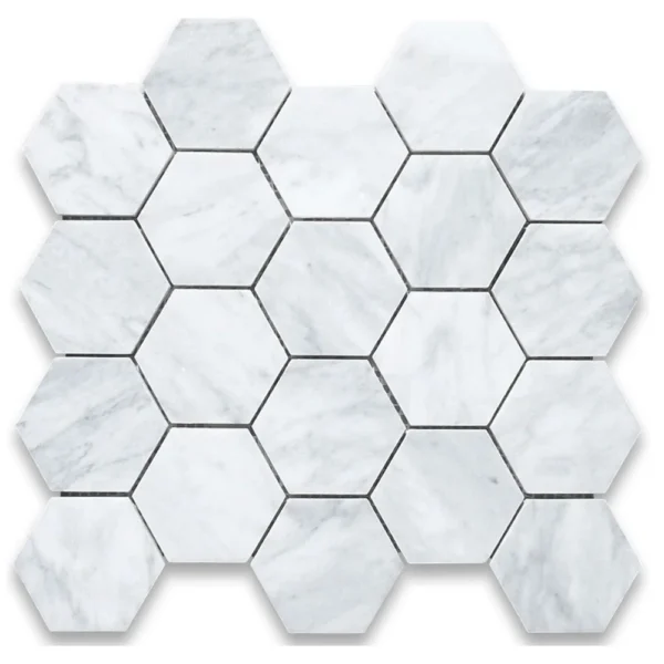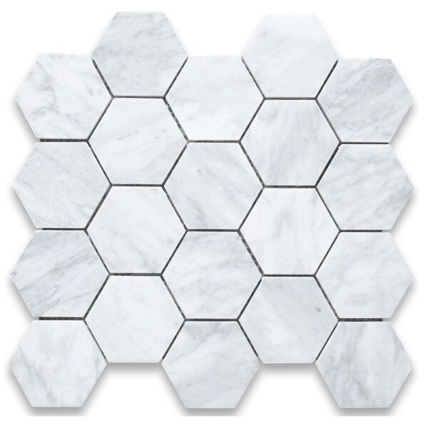 Carrara White Hexagon 2×2 Honed Marble Mosaic