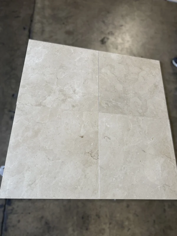 The Crema Marfil Select Polished 24×24 Marble Tile boasts a brilliant polished finish and generous dimensions, adding a sense of luxury and space to any room. Perfect for grand entrances and statement floors.