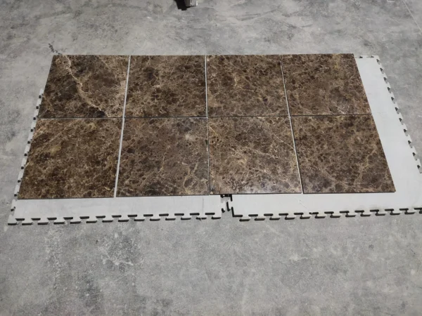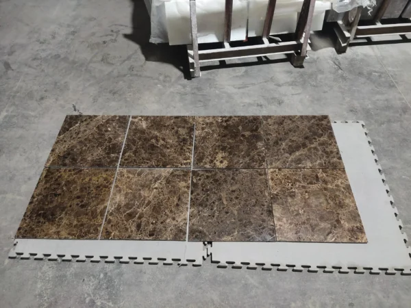 Emperador Dark Polished 18×18 marble pairs a glossy sheen with warm, deep brown coloration and organic veining for a sophisticated aesthetic. The larger square size and 3/8″ thickness deliver a refined, seamless look that elevates open spaces and classic patterns.