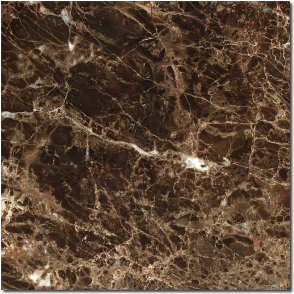 Emperador Dark Polished 18×18 3/8″ Marble Tile amazes with vibrant cocoa hues and dramatic veining, making a statement in both traditional and contemporary interiors. Adds instant luxury and depth.