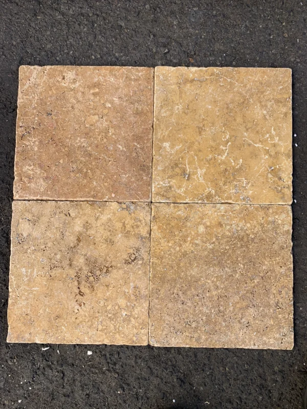 Golden Sienna Tumbled 12×12 3/8″ travertine tile delivers both durability and a striking, earthy look for your project. Its tumbled finish enhances the stone’s natural variation for a unique installation.