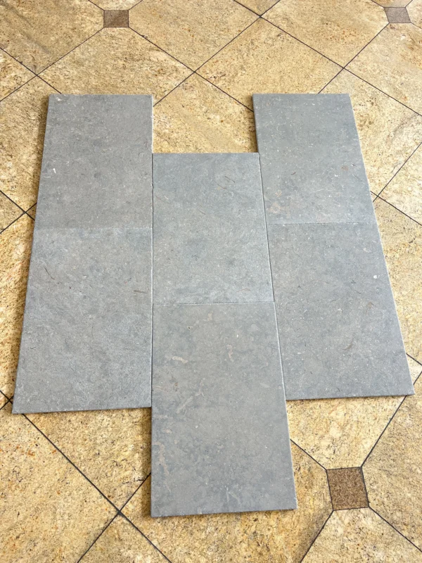 The Nova Blue Limestone Antique 16×24 tile features a timeworn antique finish that highlights the stone’s deep blue character and natural movement. With a substantial 5/8″ thickness and 16×24 dimensions, each piece covers about 2.67 sq ft for richly textured installations.