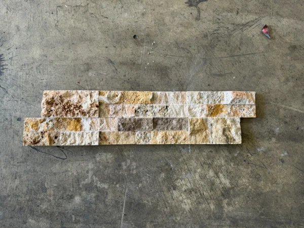 Scabos Travertine Ledger Panel features lively, multi-tonal character that adds warmth and dimension to feature walls. Each 6×24 piece is 3/4″ thick natural travertine, blending rugged texture with reliable durability.