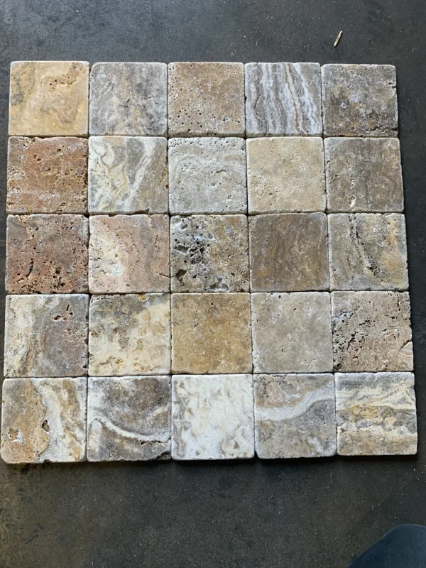 Scabos Travertine Tumbled 4×4 3/8″ Tile