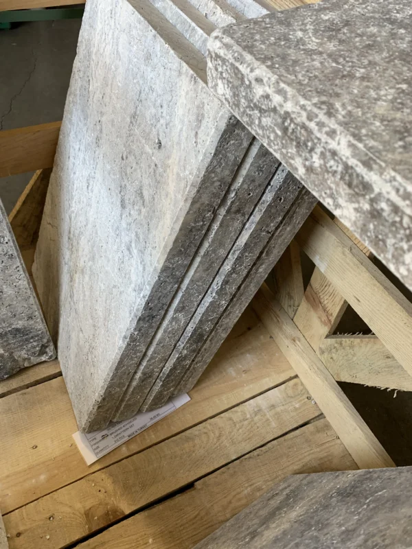 Silver Pool Coping Modern Eased Edge 16×24 2″ Travertine Pool Coping offers a streamlined look with an eased edge, perfect for modern pool design. Its quality material and thickness ensure exceptional durability and safety.