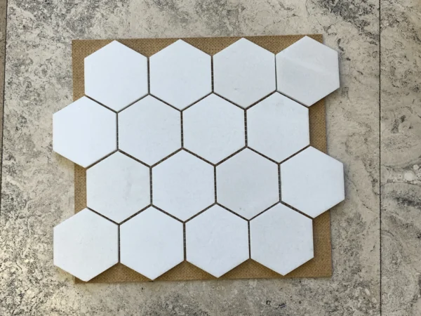 Thassos White Hexagon 3″ Polished Marble Mosaic