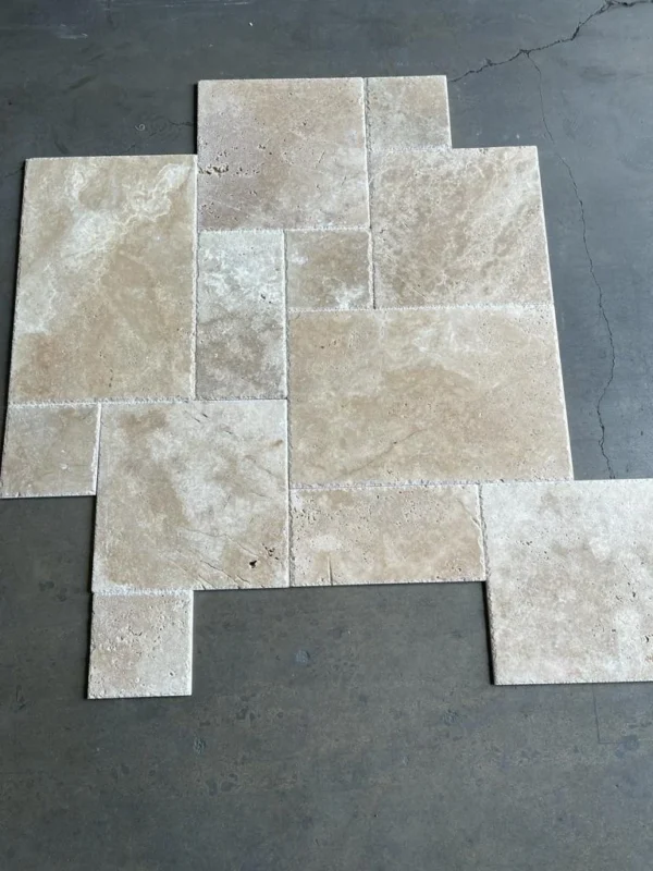 Designed in the Versailles pattern, this Noce travertine set features a brushed and chiseled finish in a classic 1/2 inch thickness for authentic, old-world texture. The modular layout installs into a timeless mosaic, with each box covering 8 square feet for efficient planning.