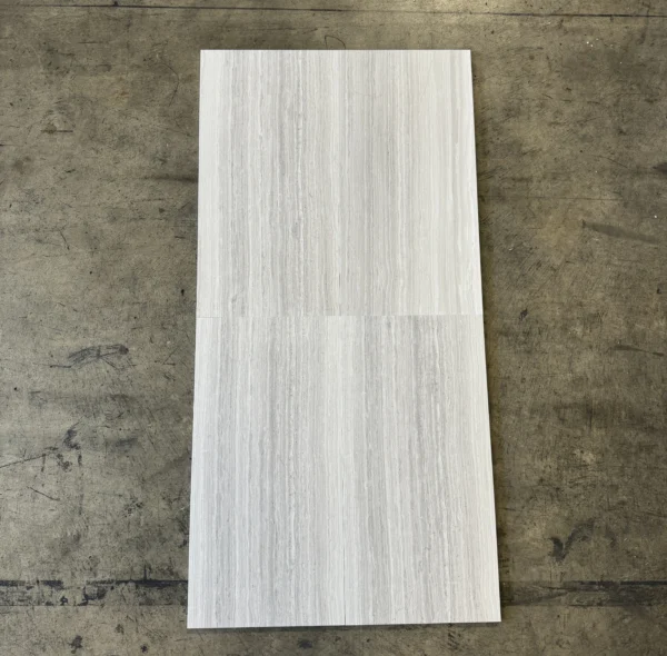 The White Oak Honed 12×24 tile features a smooth honed finish, blending aesthetic appeal with the durability of limestone. Ideal for modern and classic spaces alike.